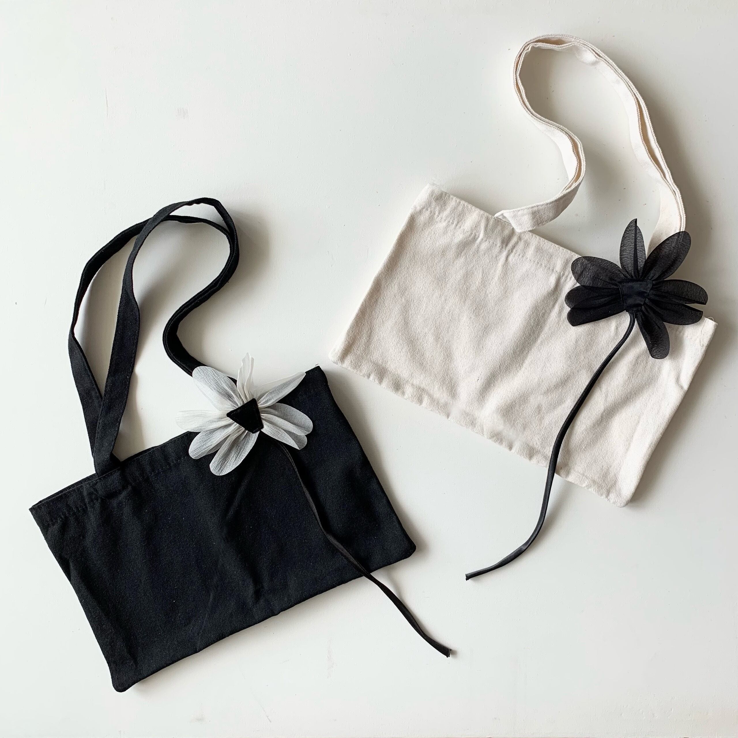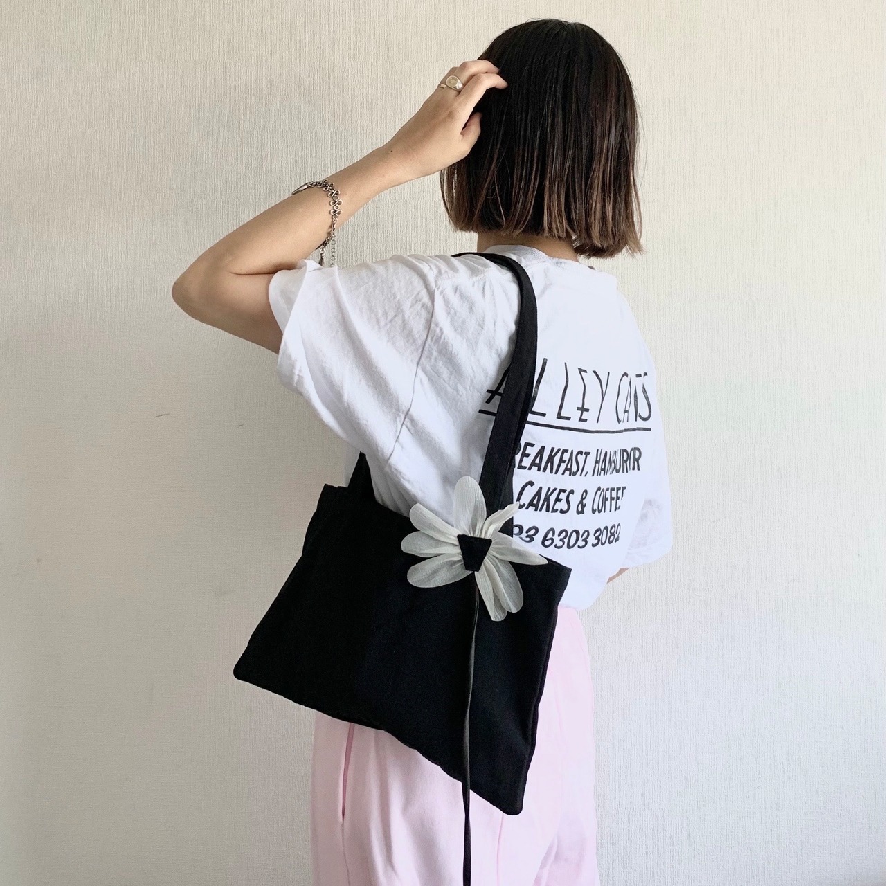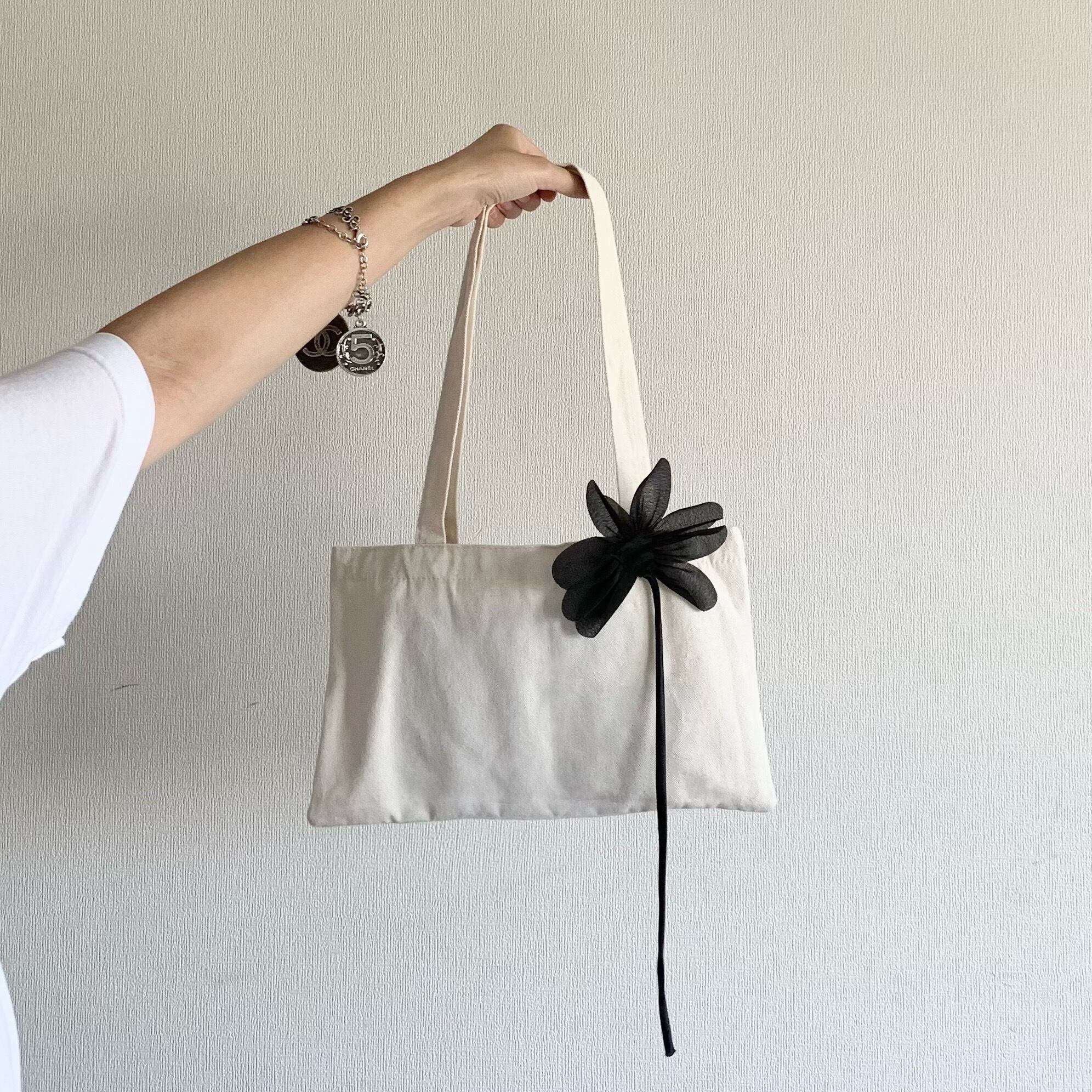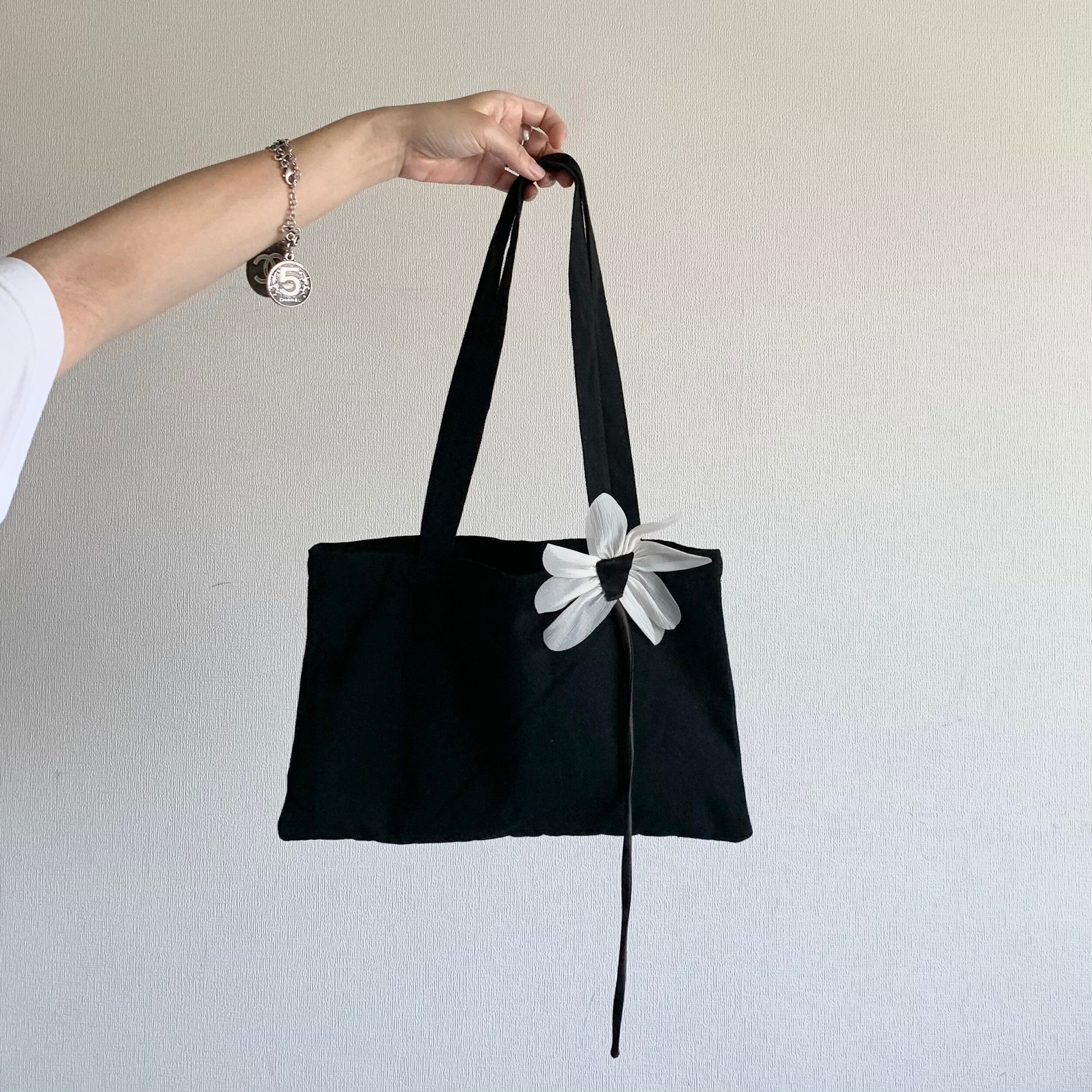 コサージュ付きトートバッグは、シンプルながらも華やかさを兼ね備えたアイテムです。