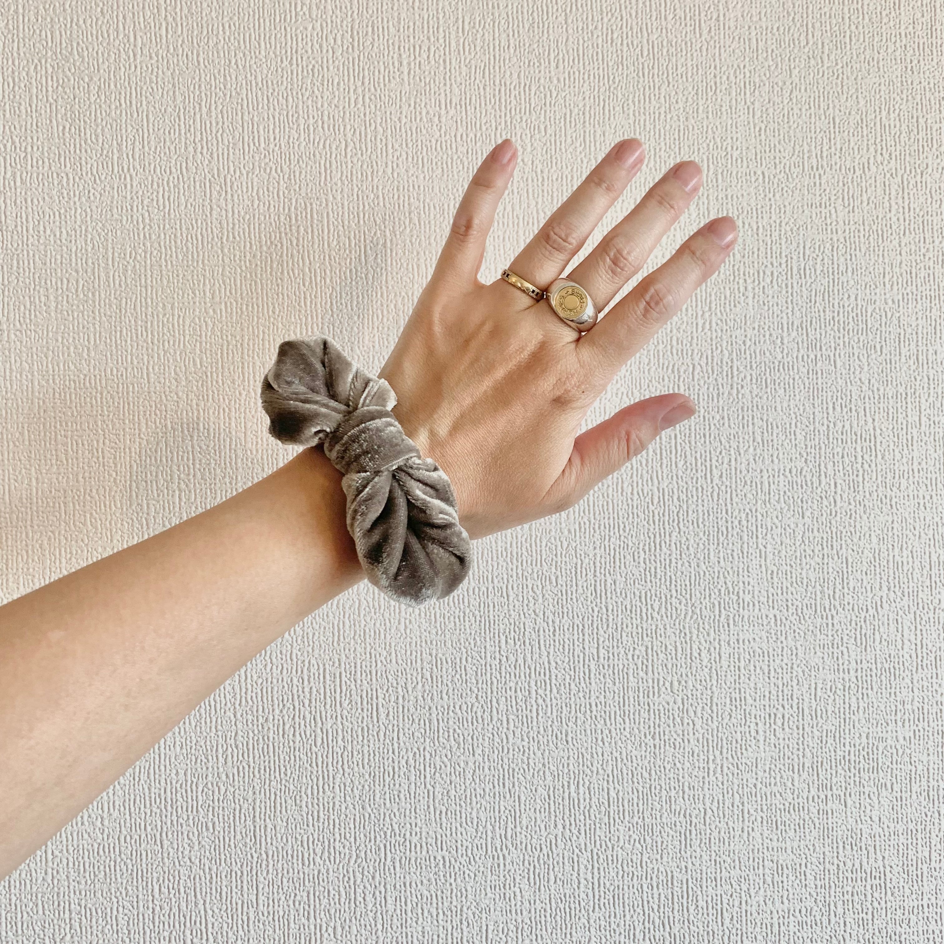 柔らかなベロア素材で仕上げられたサークルリボンヘアゴムは、上品な輝きを放つアイテムです。