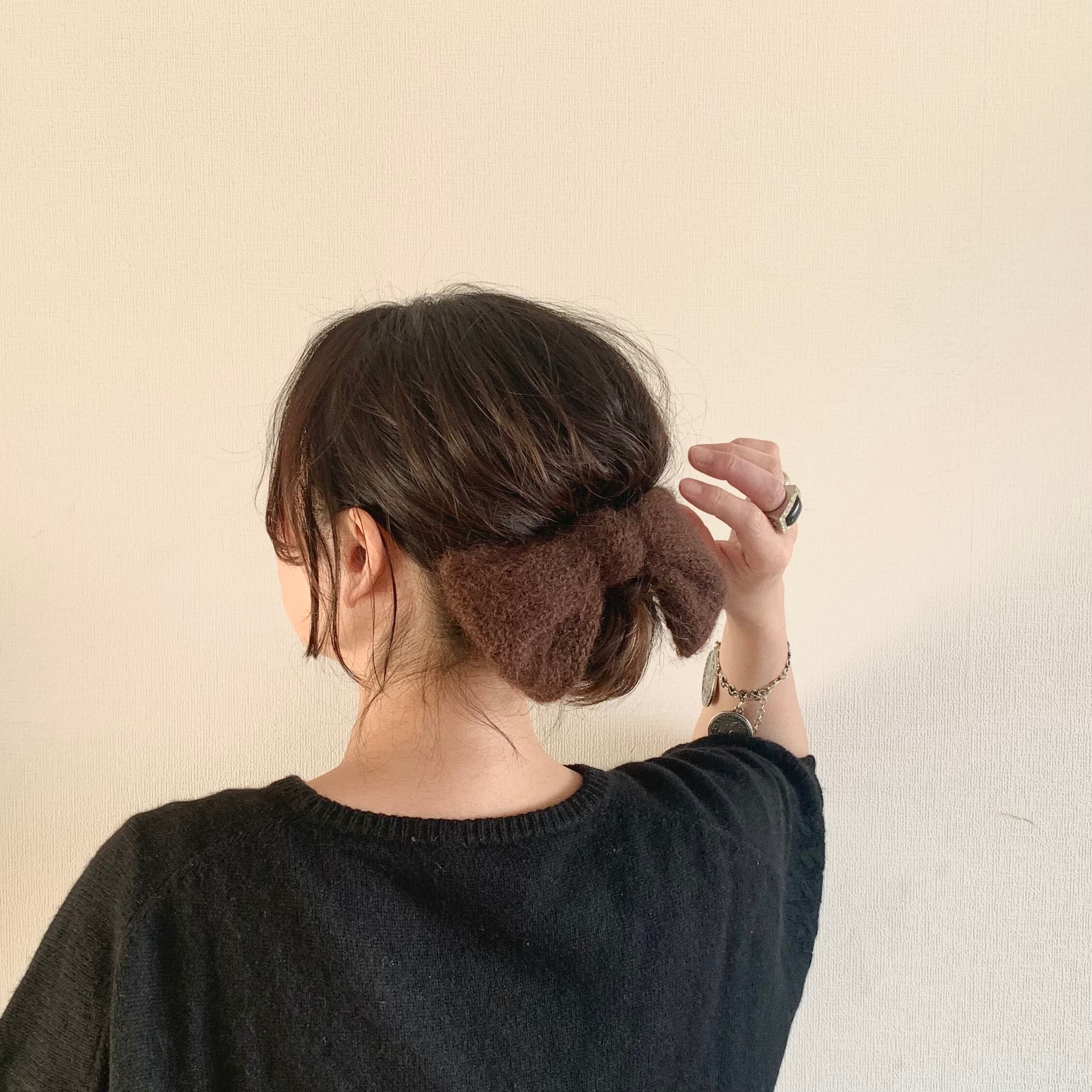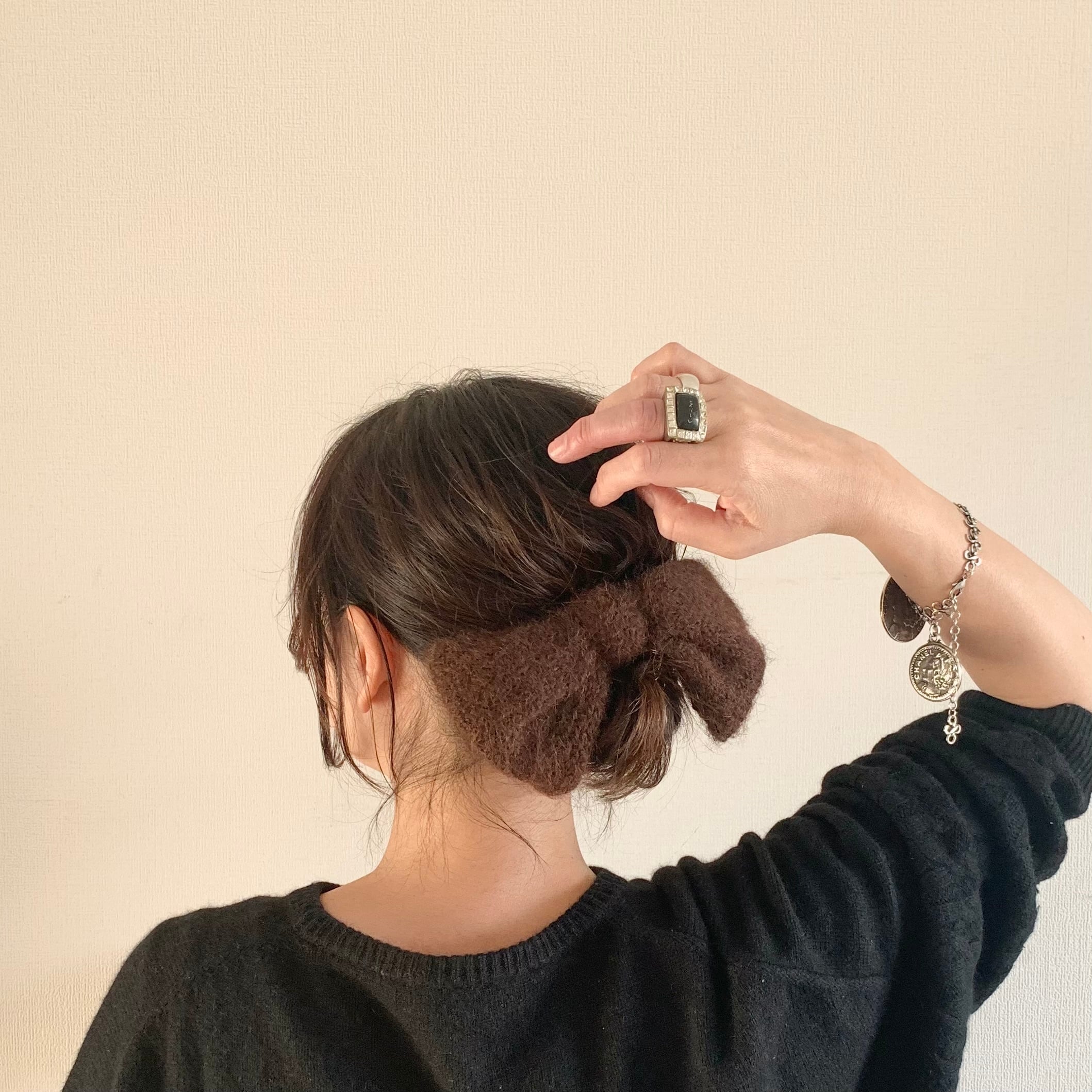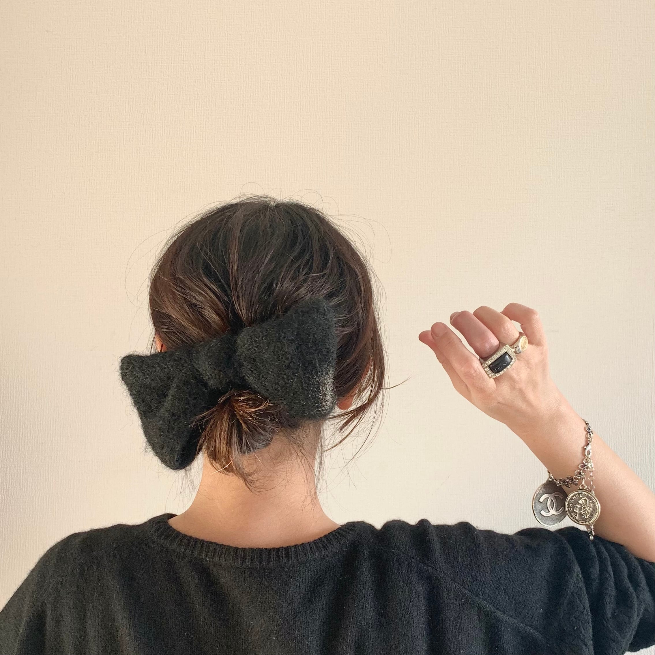 ニットの柔らかさとリボンの可愛らしさが、あなたのスタイルにちょっとした特別感をプラスします。自分用はもちろん、大切な方への贈り物としても喜ばれるアイテムです。
