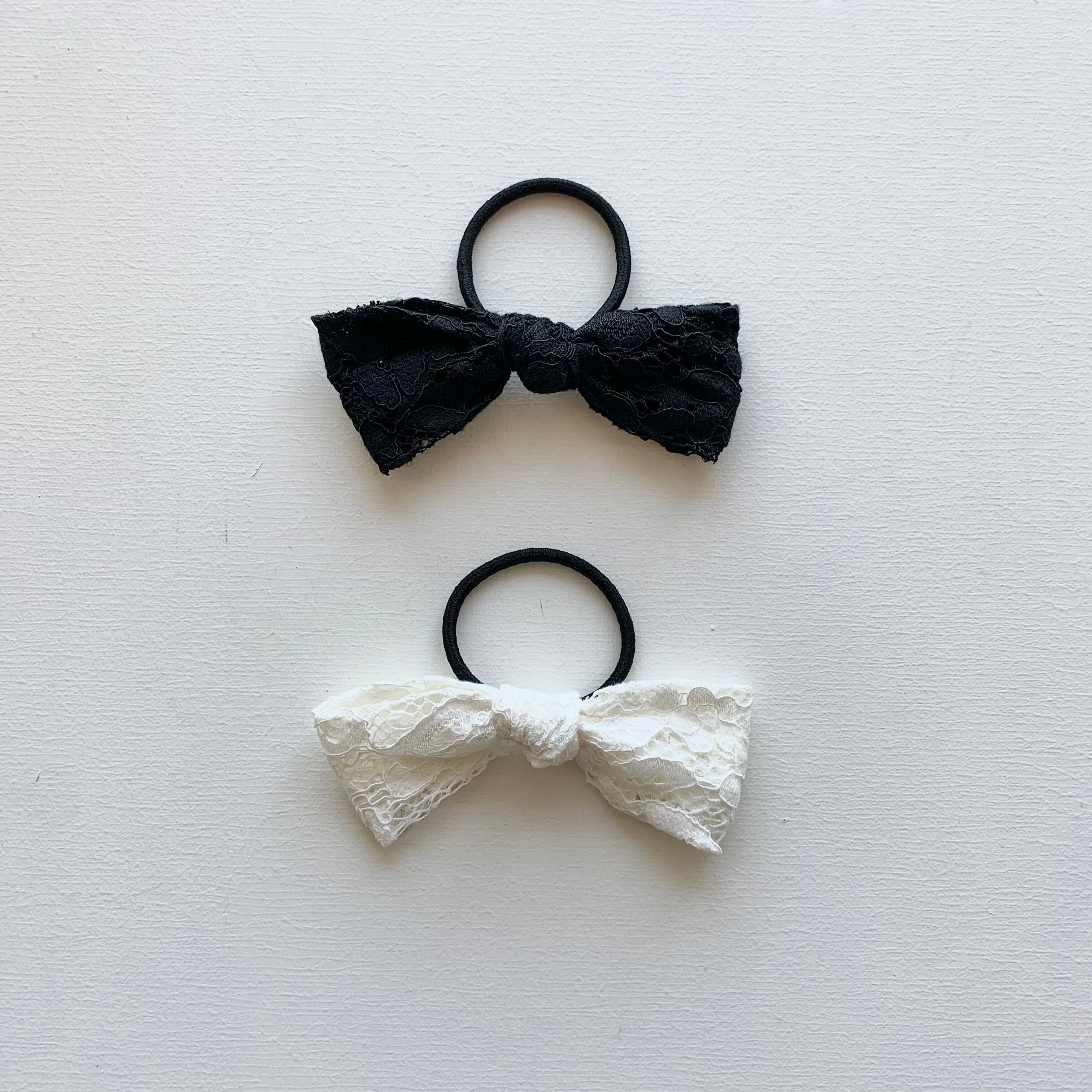 レースと小さめサイズのリボンが魅力的なヘアゴム。