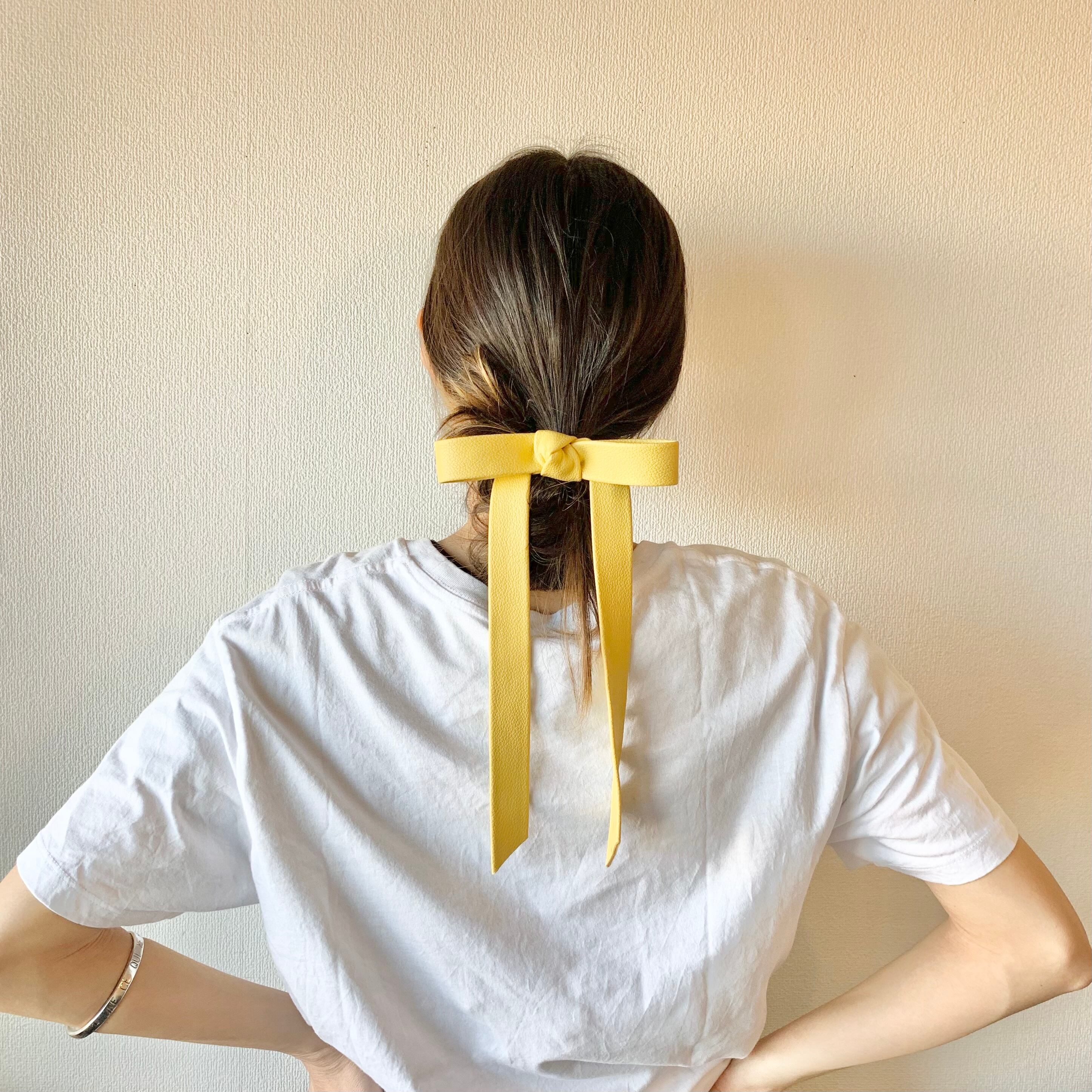 レザー風 ロング リボン ヘアゴム