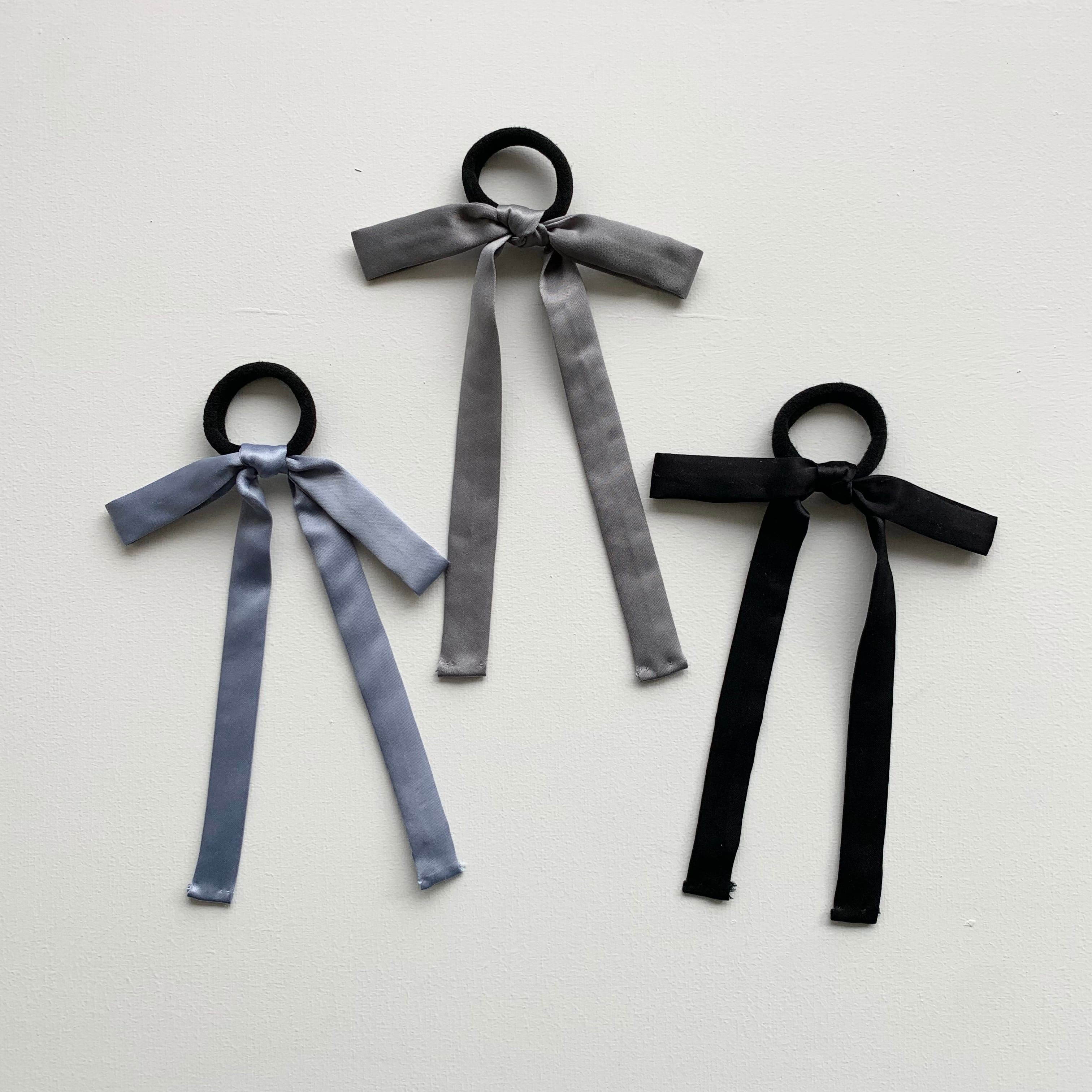 サテンリボンゴム3個がグラデーションカラーでセットになりました。