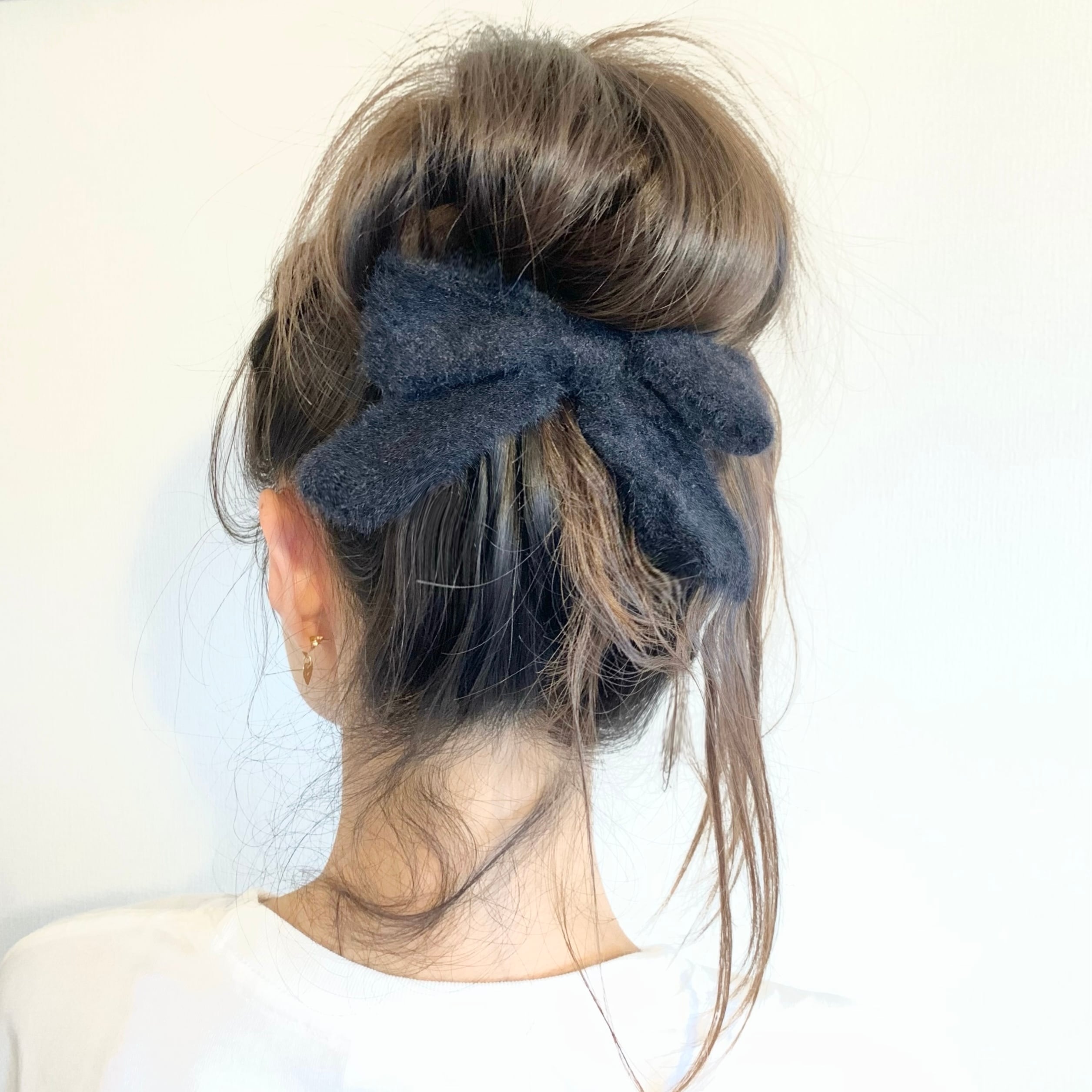 ふわふわとした質感が特徴で、髪をまとめるだけでなく、手首に巻いても可愛く演出できます。シンプルながらも存在感のあるリボンが、どんなスタイルにもフィットし、おしゃれのポイントとなるアイテムです。